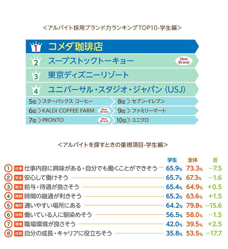 ・対象は、アルバイト先として代表的なサービス業40ブランド。