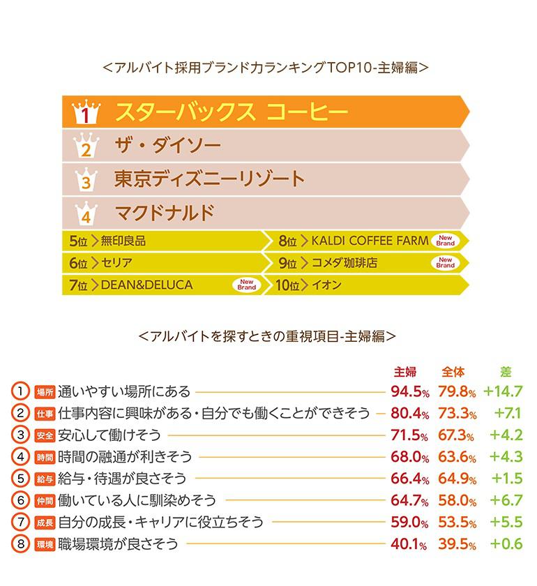 【2018年アルバイト採用ブランド力調査】人手不足に打ち勝つヒントが見える・アルバイト採用ブランド力総合第1位はスターバックス コーヒー
