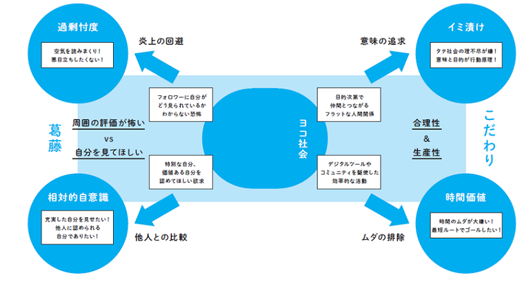 SNSは、年齢も肩書も国籍も関係なく個と個でつながり、フラットでボーダレスな「ヨコ社会」。何らかの目的があって集まった人たち、という感覚で、いろんな人と協力しながら進める「プロジェクト型」を志向する。