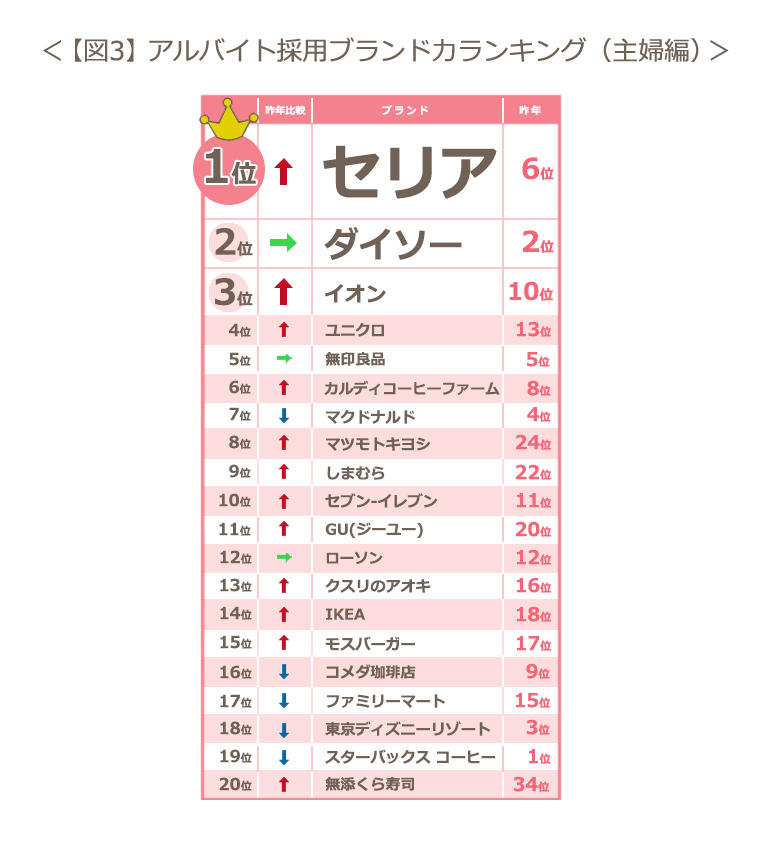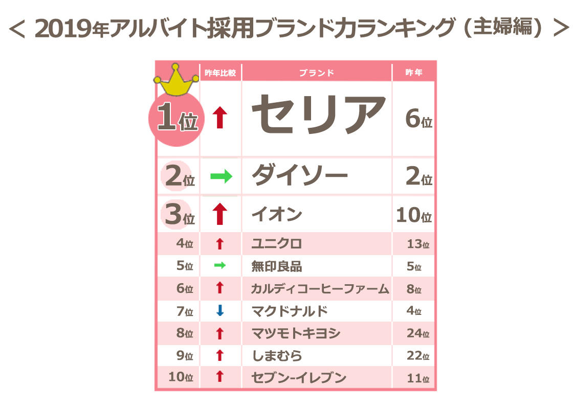 【ニュースリリース】2019年アルバイト採用ブランド力調査(主婦編)/業界別では100円均一が、ブランド別ではセリアがトップ
