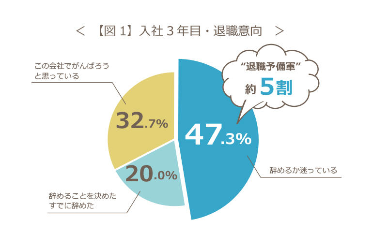 1.入社3年目以内で「すでに辞めた・辞めたいと思っている」若者は約7割