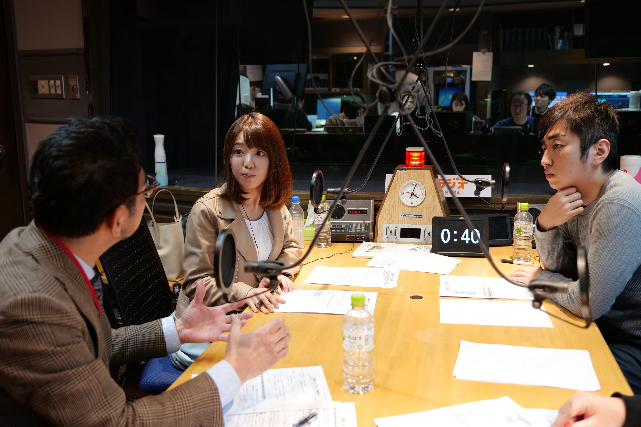 メインパーソナリティは芥川賞作家の羽田圭介さん。そしてフリーアナウンサーの幸坂理加さんと直接対談しました。